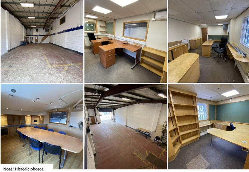 This industrial and office unit forms part of a small established industrial estate and comprises ground floor workshop 105 m2 (1,126 ft2), ground floor reception / office area with kitchen and WCs. In total, the gross internal area of the ground floor is 190.8m2 (2,053ft2)
